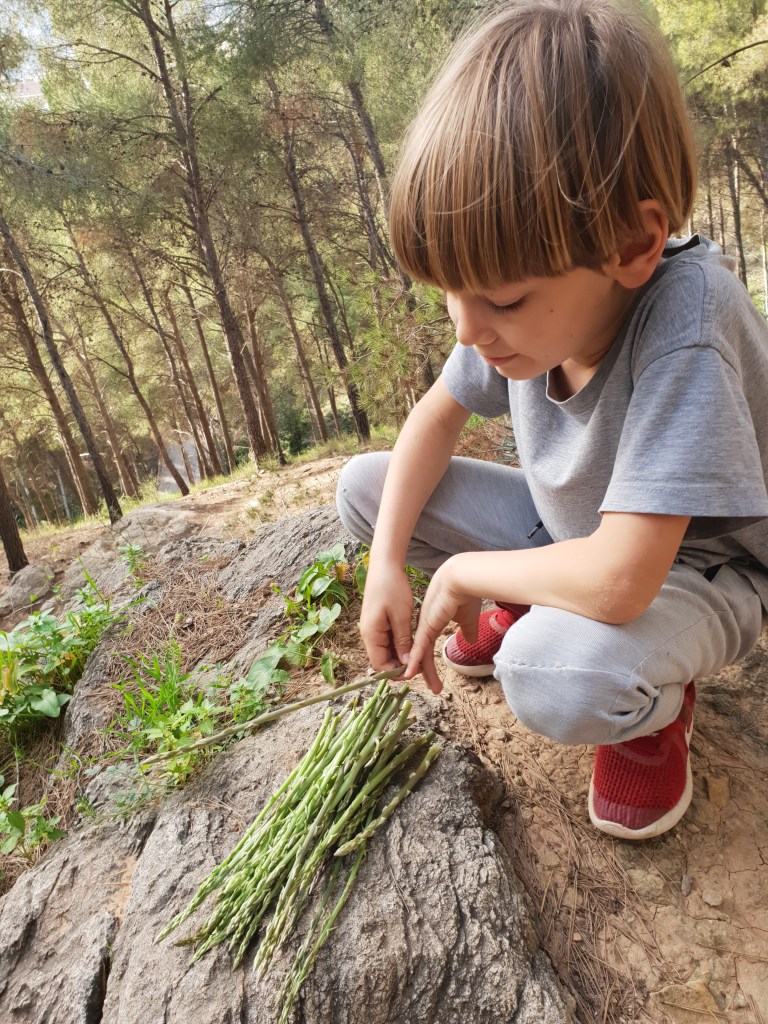 Sai ikka päris mõnus hunnik neid jälle korjatud. Mets-sparglid on sellised põnevad tegelased, põõsas ise on jube terav ja okkaline, aga need uued võrsed, mis kevadel selle okkapuhma alt maa seest välja tulevad, on pehmed ja mahlased. Kodus tükeldasime nad ära ja segasime omleti sisse. Yumm!