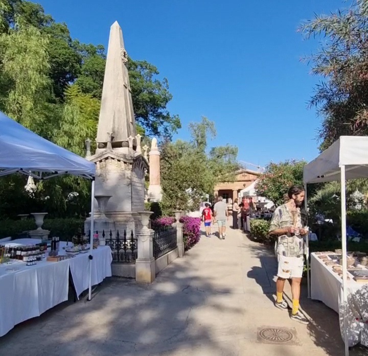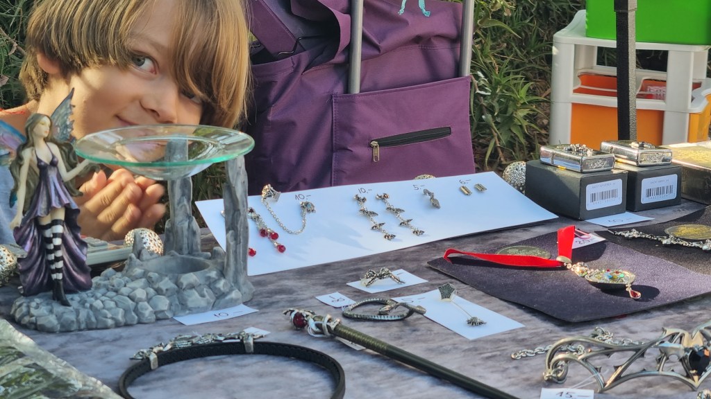 Aga ise käisime ka nädalavahetusel laadal träni müümas. Siin üsna meie lähedal on inglise kalmistu ja nad korraldavad aeg-ajalt üritusi, kuhu tulevad igasugused müüjad (raamatud, antiik, käsitöö, vein, taluasjad a la mesi jne) ja esineb mõni bänd ja on foodtruck (burksid, hotdogid, õlu jne lahja alko). Ühesõnaga nagu pidu ja pillerkaar tuuakse surnutele ka “koju” kätte.