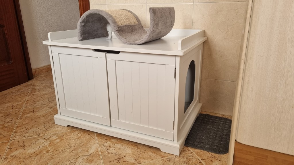Need uksed käivad lahti ja mugav puhastada (sees on see plastikust liivakauss). Kasside sissepääs on paremalt küljelt. Sisse astudes kõigepealt väike vaba pind ja siis edasi liivakauss. Ukse ees veel vaibake ka. Nii et kokkuvõttes põrandad puhtad ja esteetiliselt ka ok, ei saa arugi et vets. Ostsin soodukaga, äkki 50 oli, enam ei mäletagi.